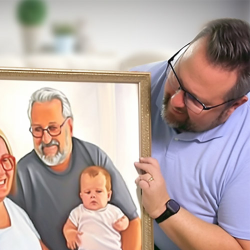 Onze digitale schilderijen zijn ware kunstwerken, digitaal met de hand geschilderd op basis van uw persoonlijke foto's, met slechts één unieke versie die ooit zal bestaan.